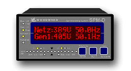 The SPM-D10 digital synchronizer incorporates control logic for one circuit breaker (including a two-phase synchronization), display of ac data on the front panel, a user keypad, a built-in synchroscope, and easy configuration. Also available is built-in utility protection for over-/under-voltage, over/under-frequency, phase/vector shift; generator protection for over-/under-voltage, over/underfrequency, and for reverse/reduce power and overload. The SPM-D10/YB is a three-phase synchronizer that includes the complete control logic for one power circuit breaker. Additional expanded function logic to couple synchronous networks and different de-energized (black) busses completes this unit to a complete and powerful solution. *** The SPM-D11 provides load sharing, and the SPM-D21 adds two-breaker synchronizing and load control.